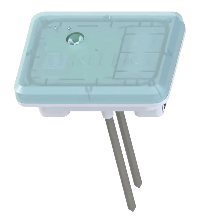 The Tektelic Clover Agriculture Sensor measures and reports soil moisture & temperature levels. It also measures and reports ambient air temperature, relative humidity and light intensity.